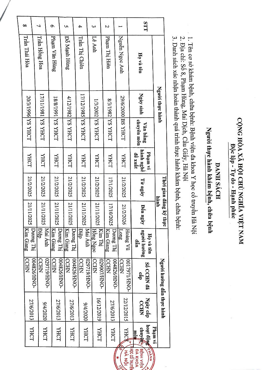 Danh sách người đi thực hành K1 năm 2025
