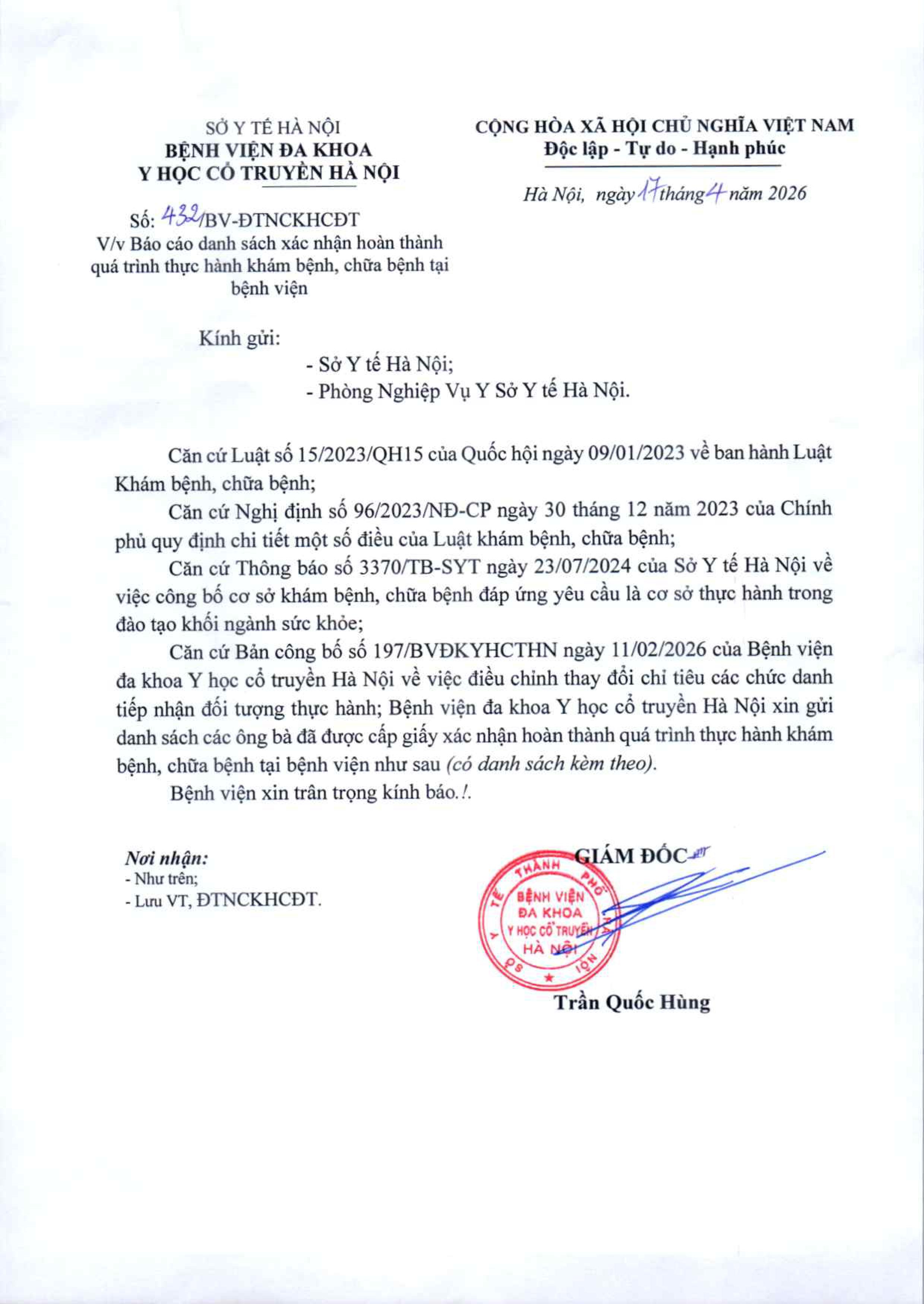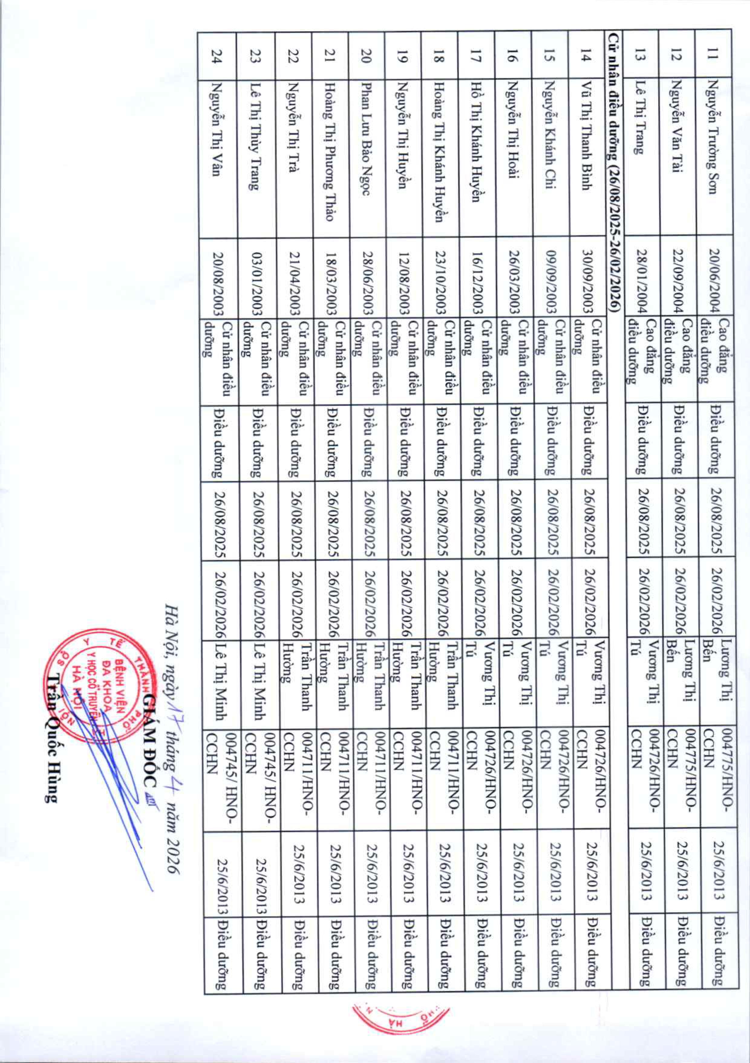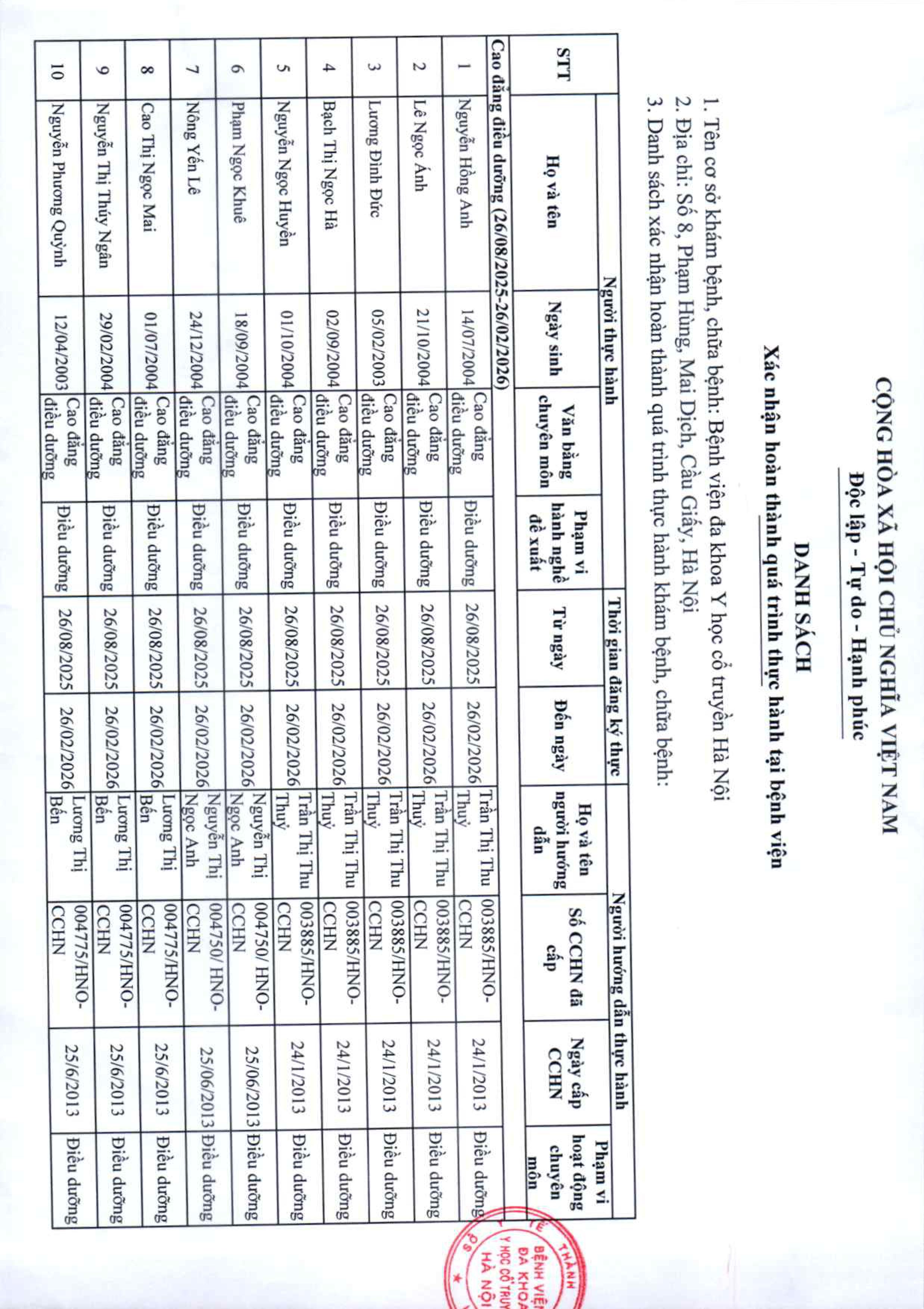 Danh sách xác nhận hoàn thành quá trình thực hành điều dưỡng K5 2025