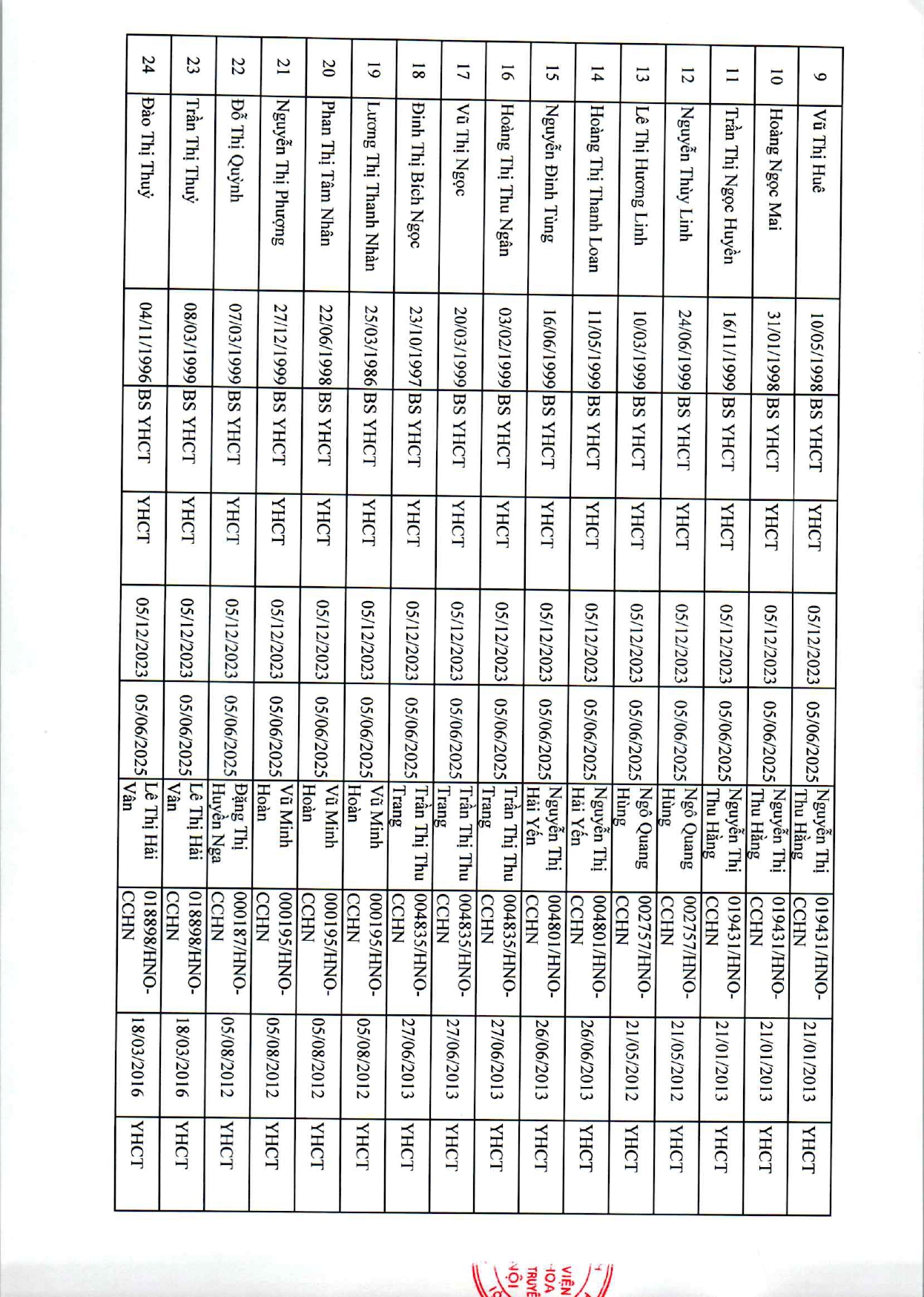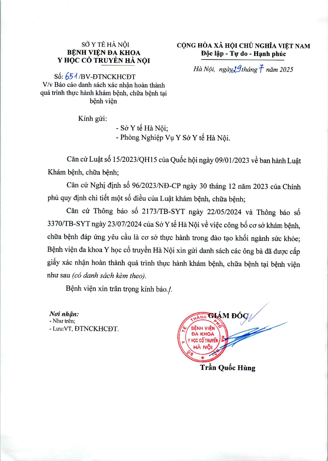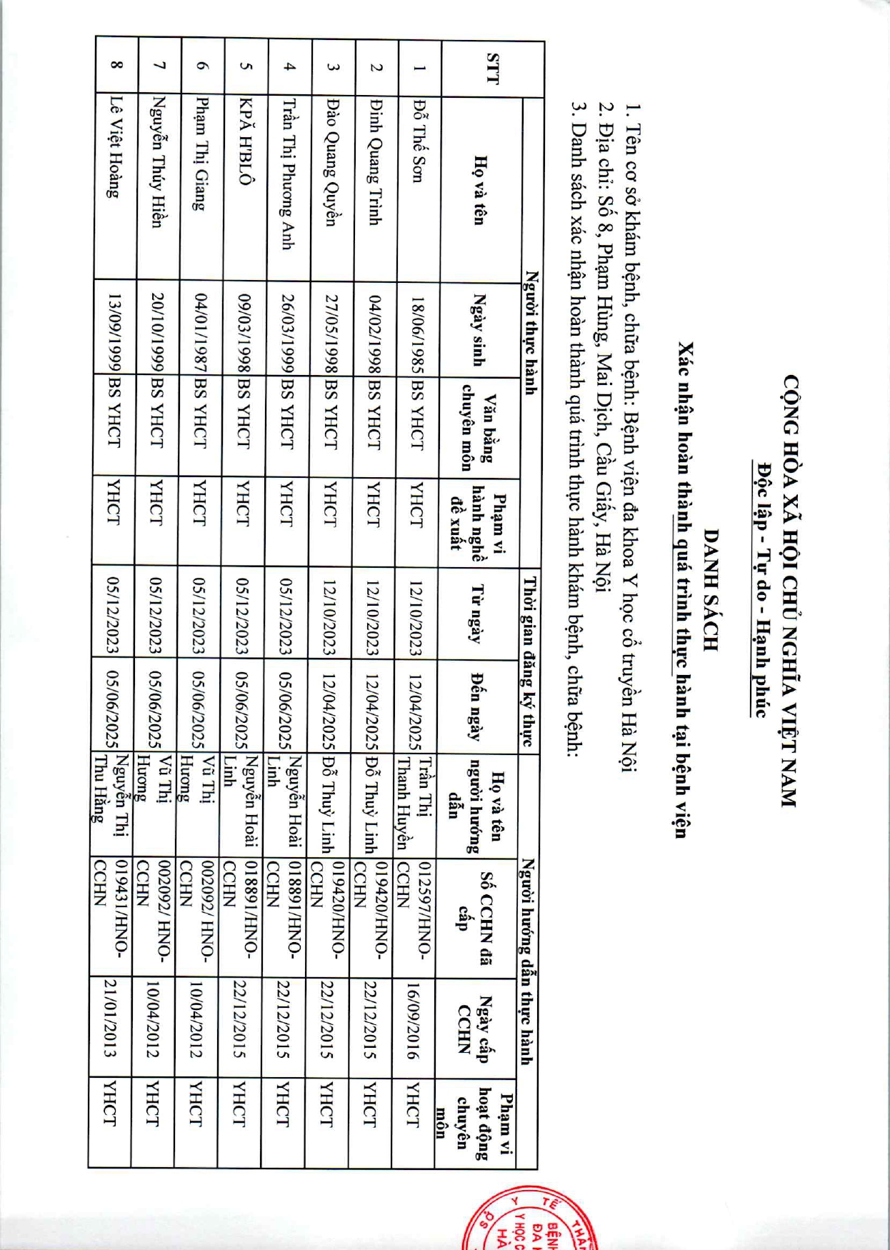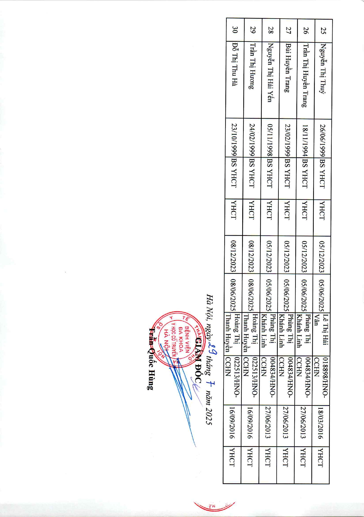 Danh sách xác nhận thực hành BS K3 4 24 Th7 2025