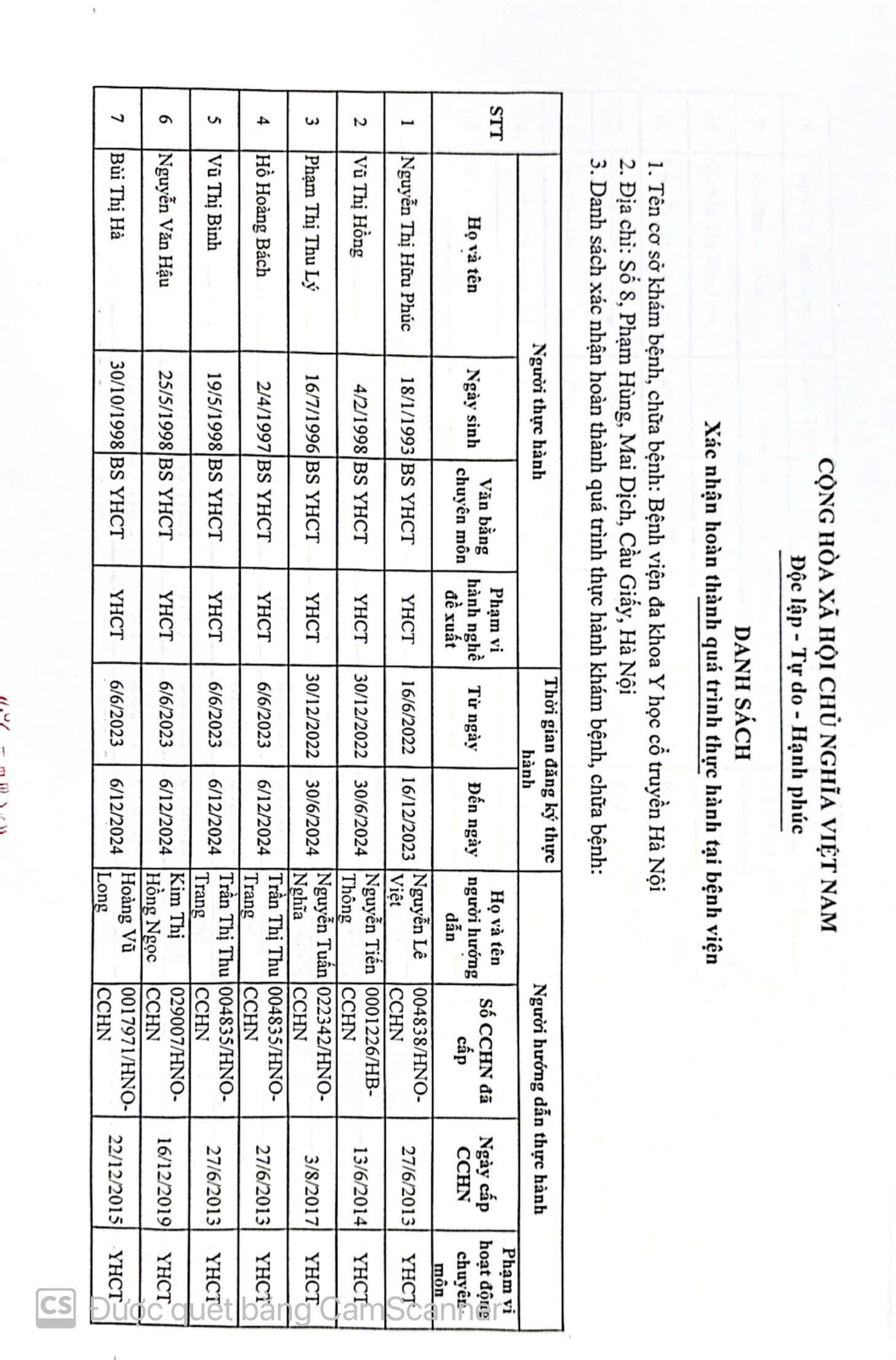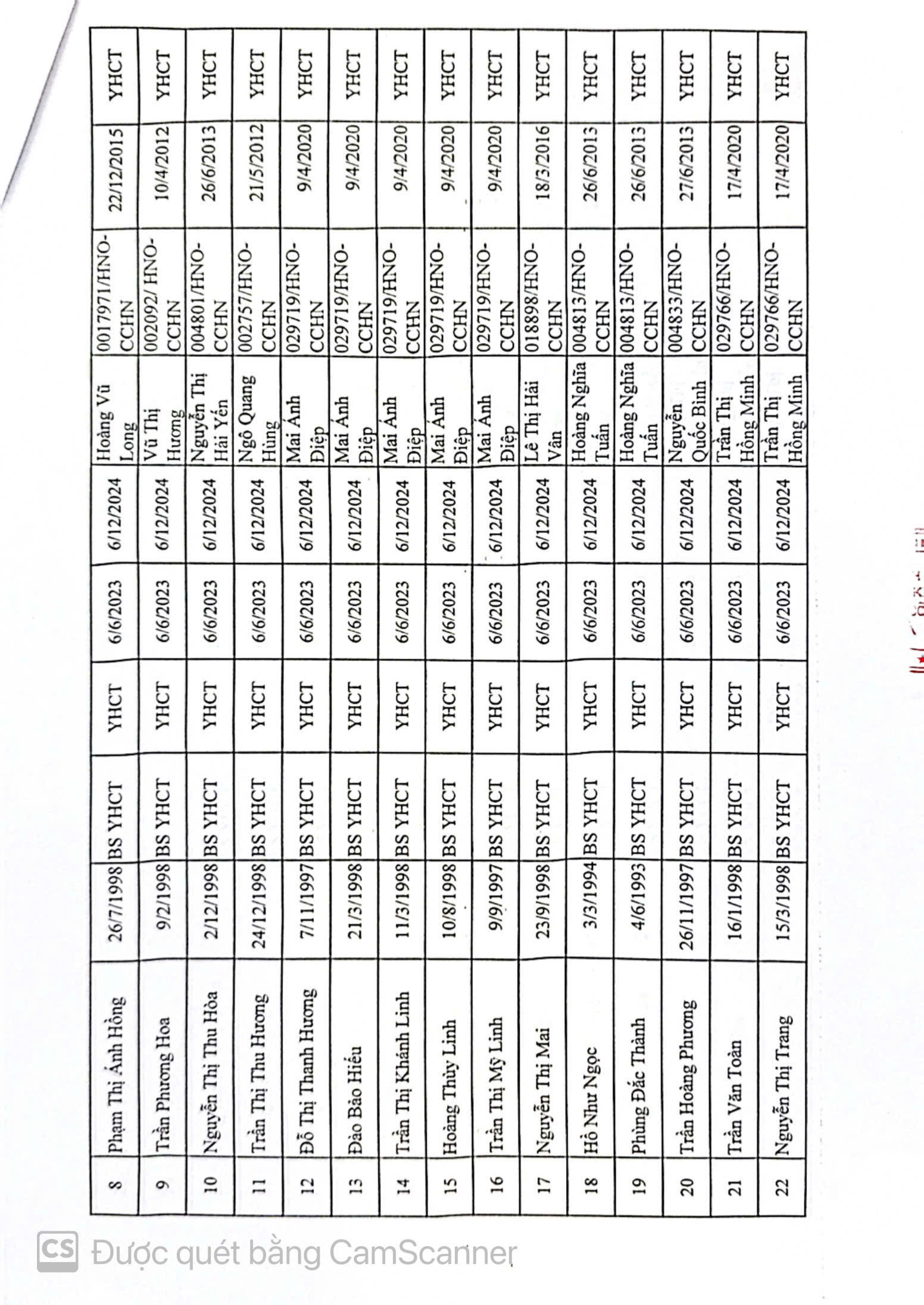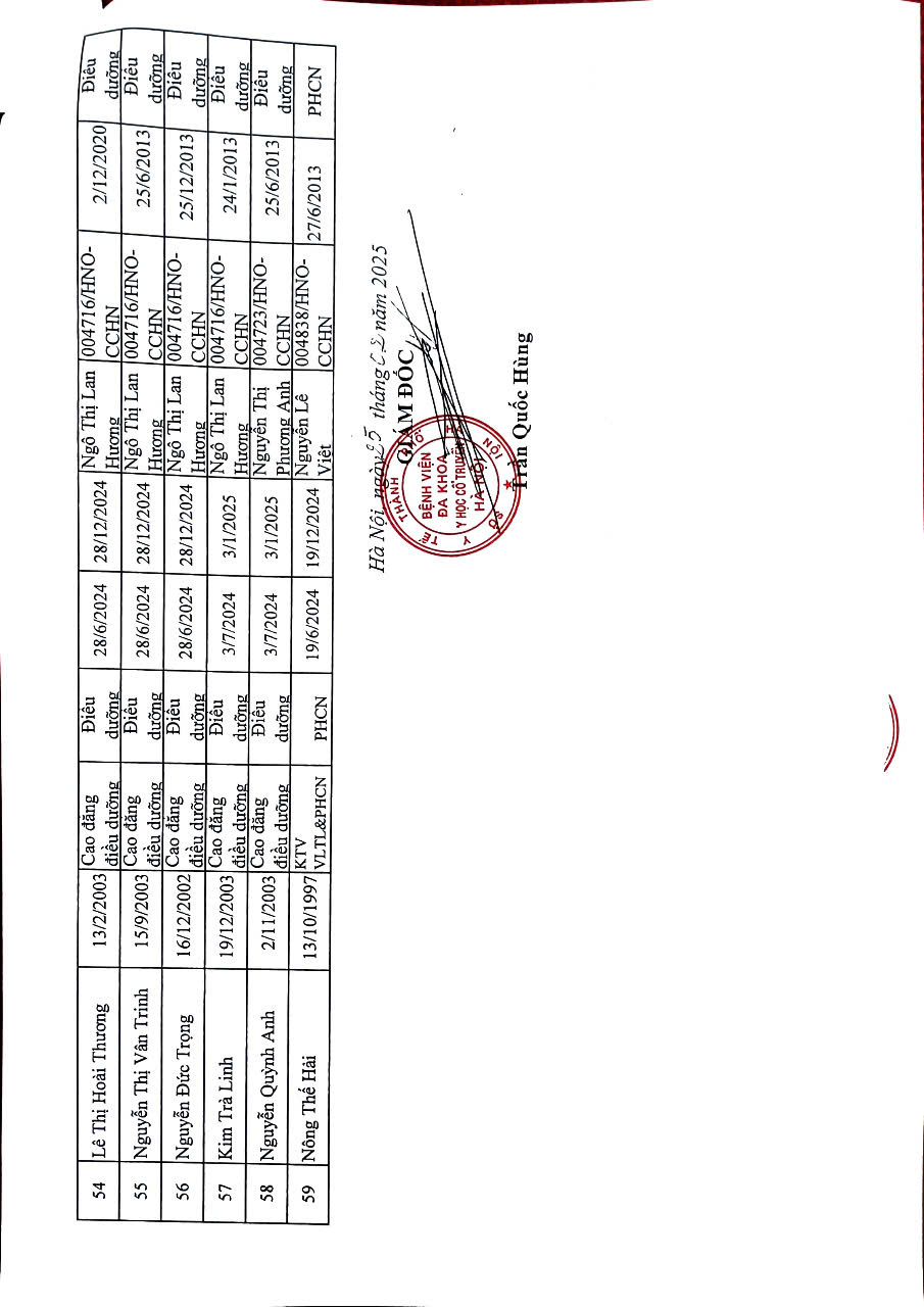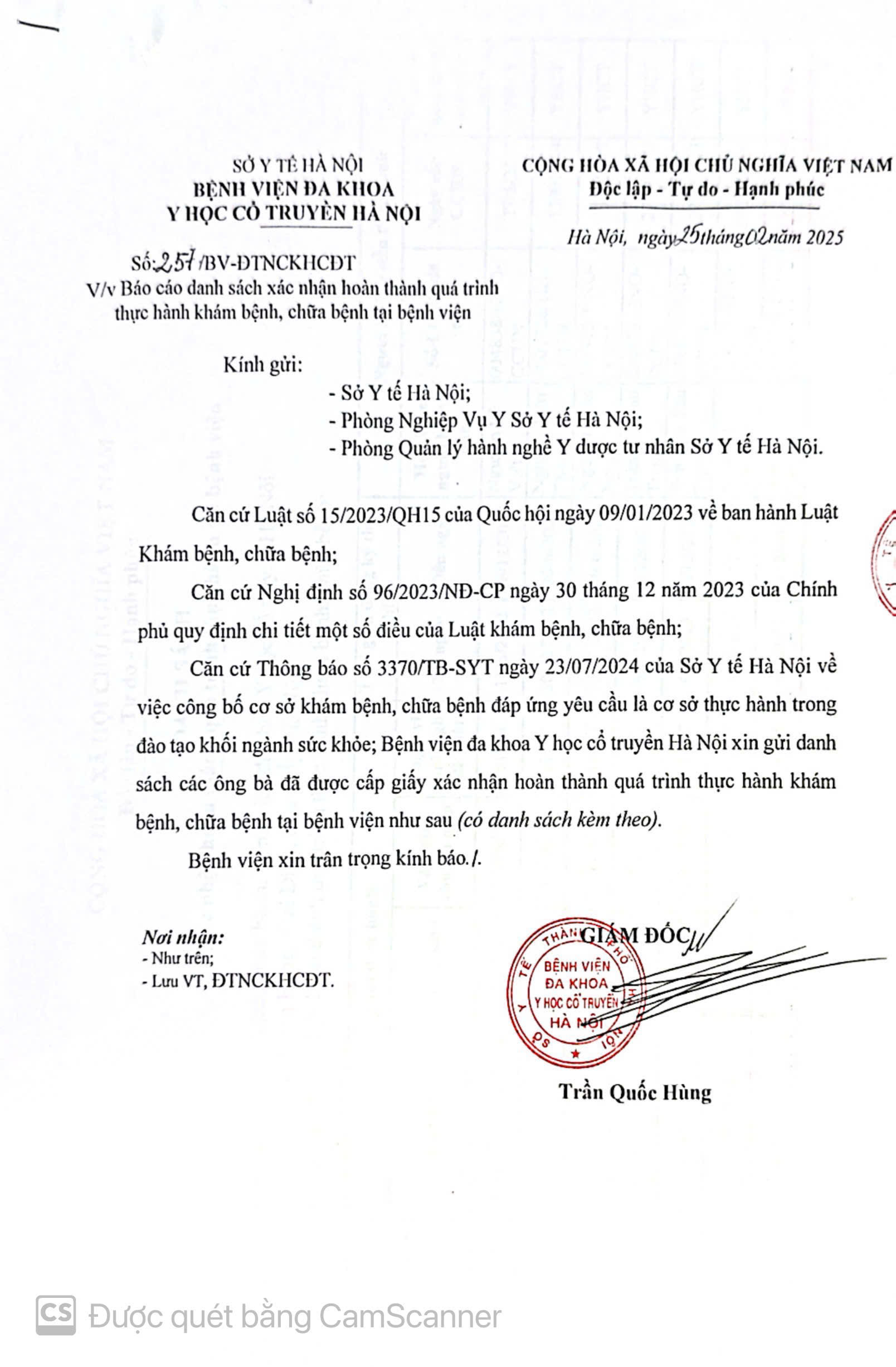 Danh sách xác nhận thực hành tháng 2 năm 2025