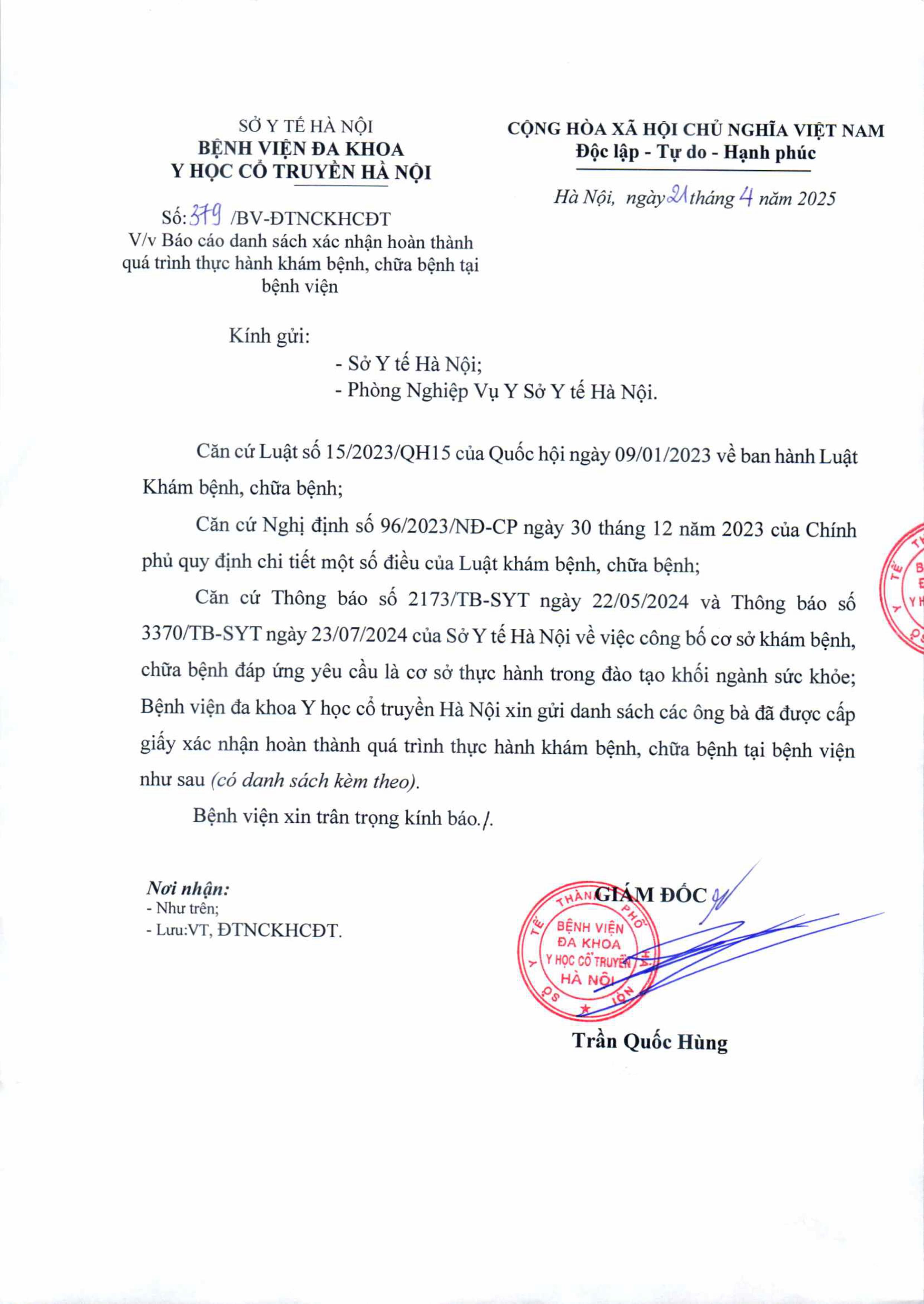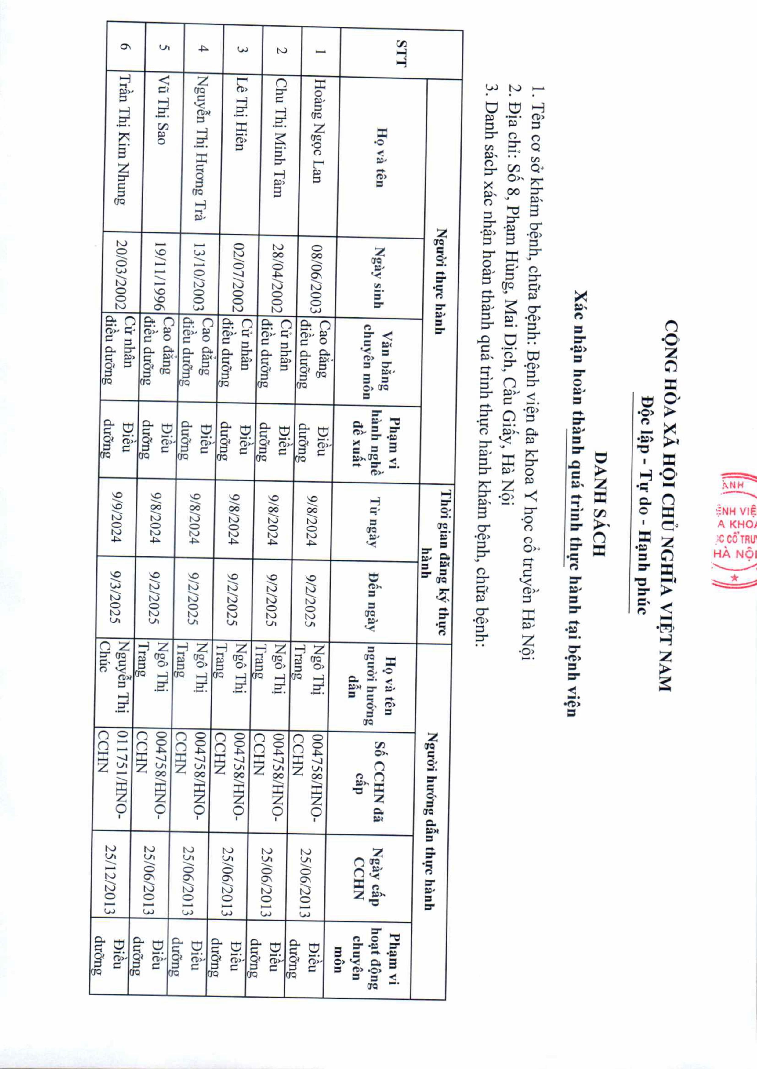 Danh sách xác nhận thực hành tháng 4 năm 2025