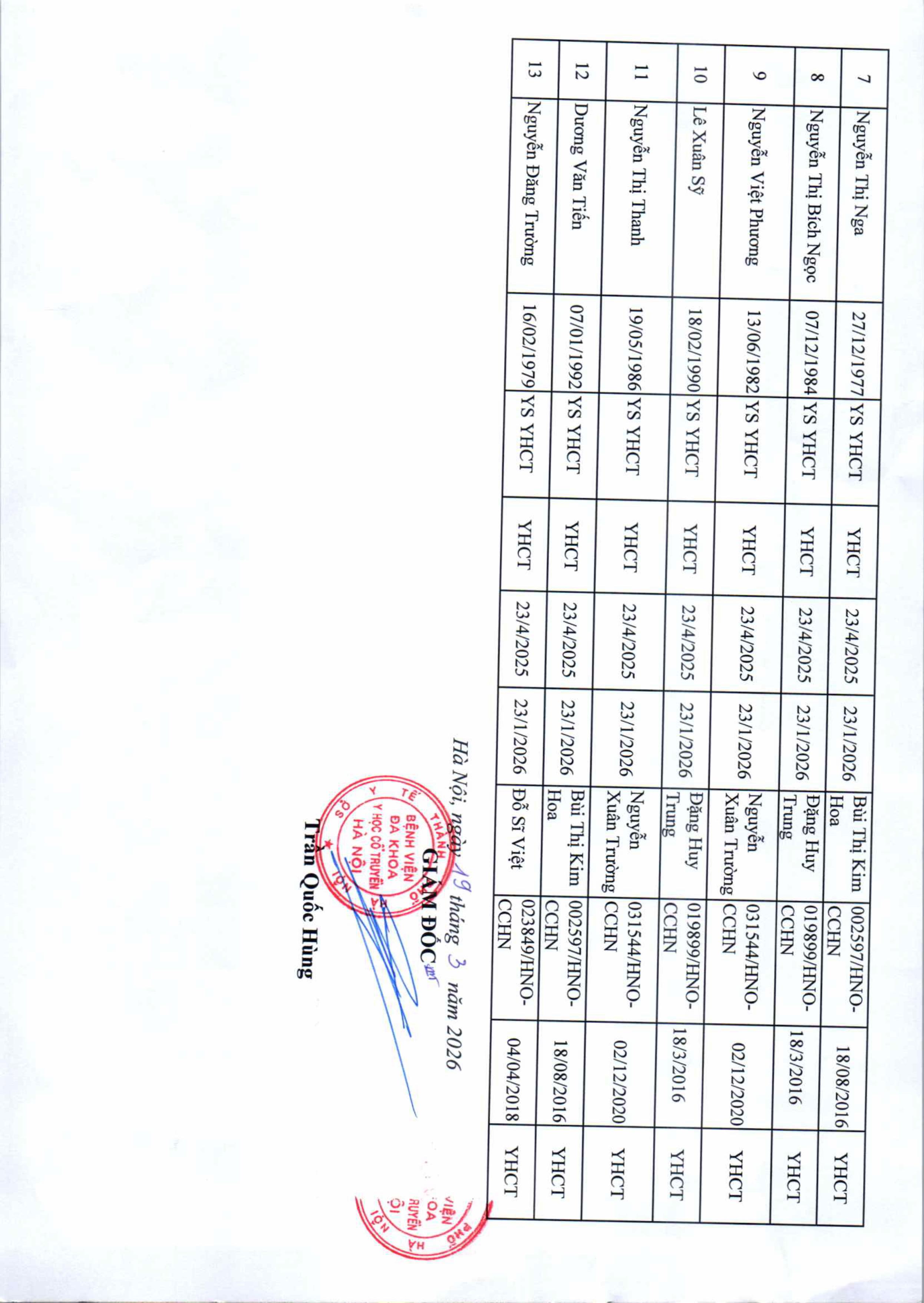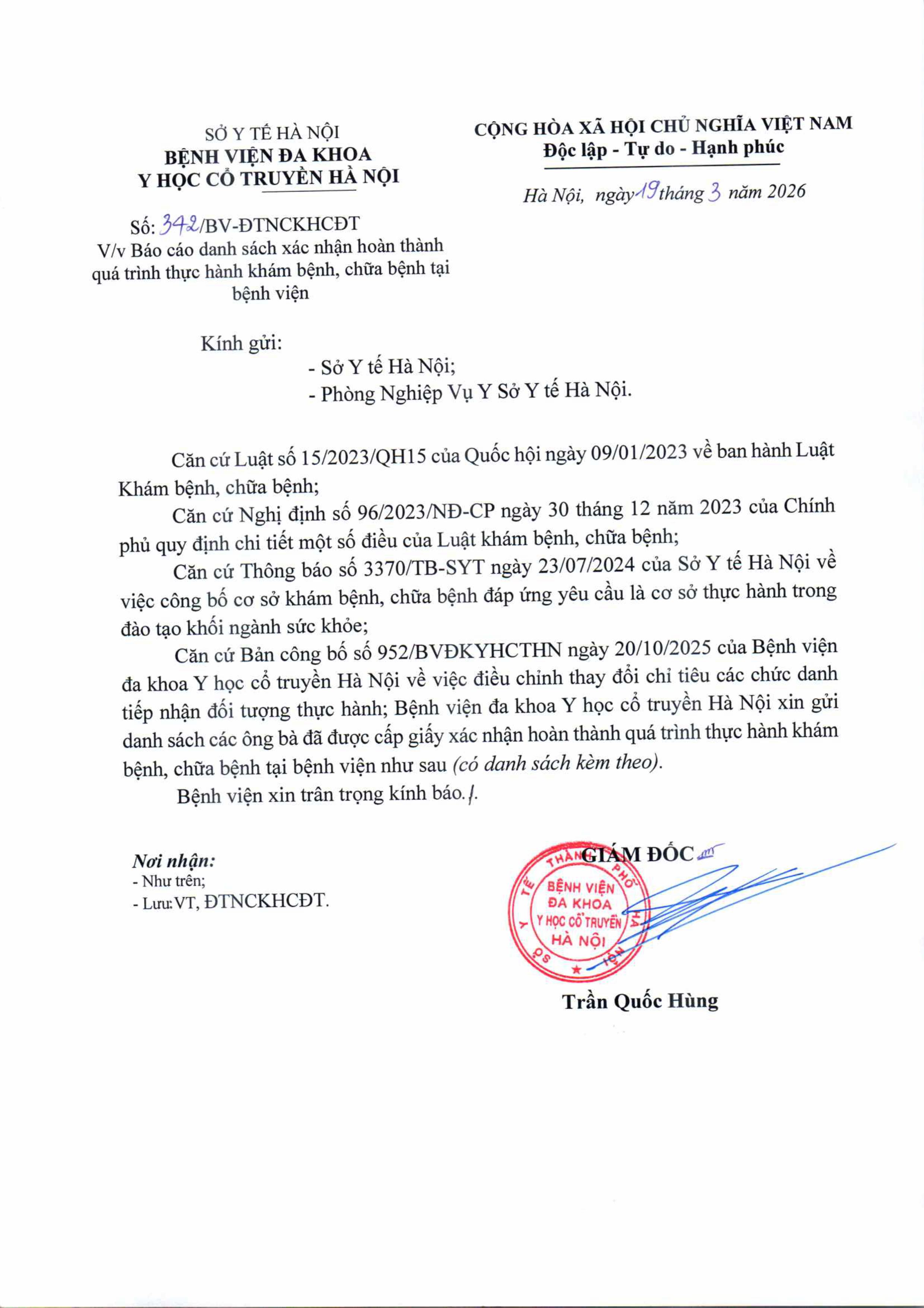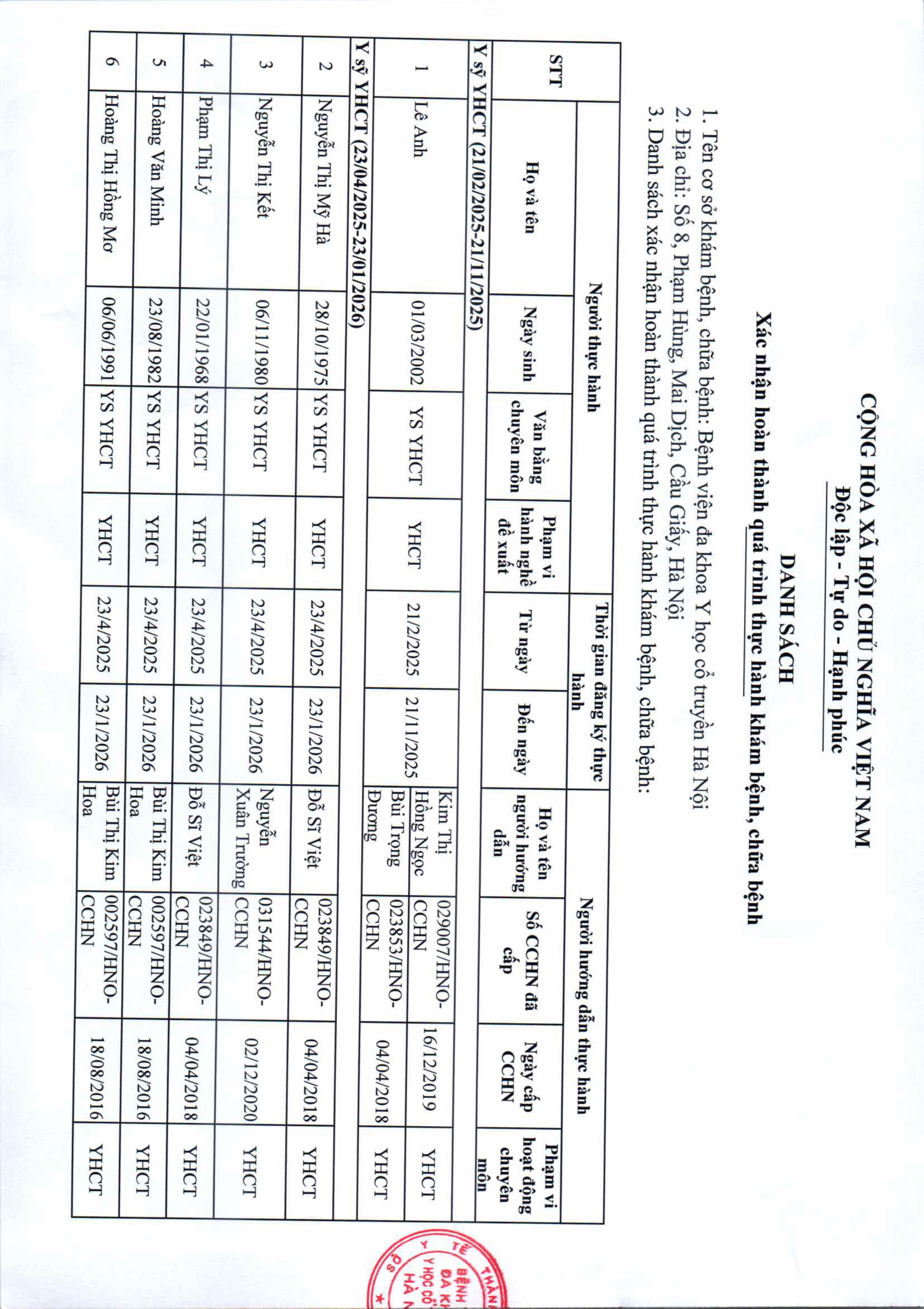 Danh sách xác nhận thực hành YS YHCT K2 25